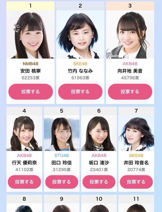 STU48さんの7ならべ、SKE48さんの大富豪、AKB48さんのドボンからも投票できます👌