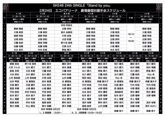 2月24日(日)開催、 #SKE48 「 #Standbyyou (youtu.be/zYYzf81pCks)」劇場盤個別握手会(静岡:エコパアリーナ)に関するお知らせを掲載しました。