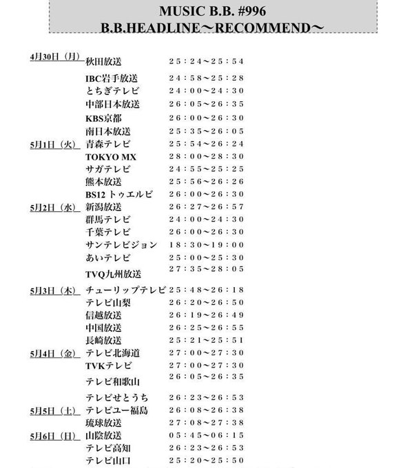放送局はこちらからチェック!(4/30〜5/6) pic.twitter.com/HMhTf0E1ex
