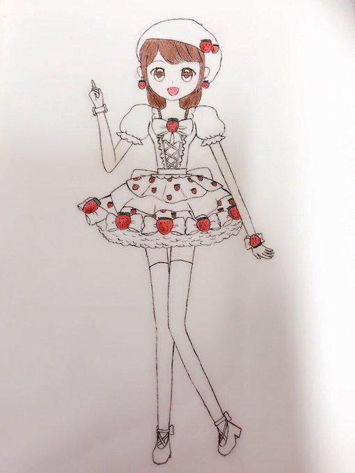 この絵は、じゃんけんユニット「#いちごさん 🍓」で、どんな衣装にしようかメンバーでアイデアを出し合ってたとき、他の案がでて結局ボツになった私の描いた衣装案の絵です(笑)