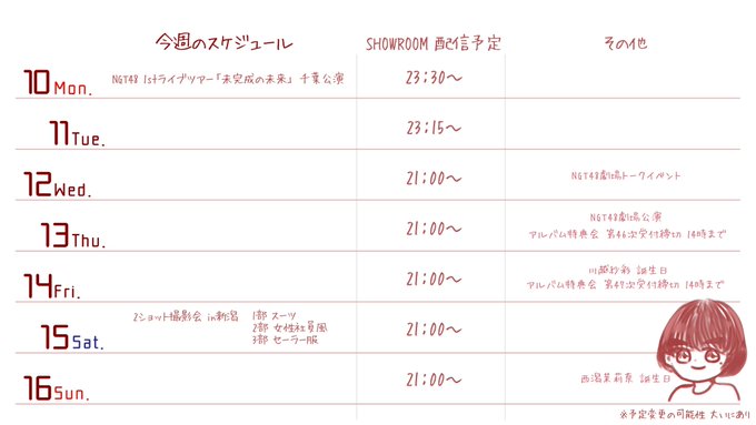 三村妃乃@hino_yuiitsu62 -- 🏫今週のスケジュール🏫 pic.twitter.com/SrxgLCDCs0 川越紗彩(NGT48)@saaya_kawagoe48 -- @hino_yuiitsu62 誕生日書いてくれてて愛おしい 三村妃乃@hino_yuiitsu62 -- @saaya_kawagoe48 うふふ😚