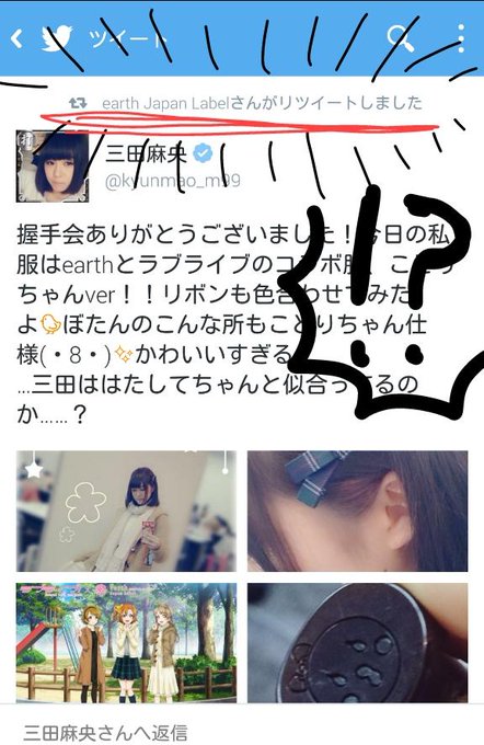 握手会ありがとうございました!今日の私服はearthとラブライブのコラボ服、ことりちゃんver!!リボンも色合わせてみたよ🐤ぼたんのこんな所もことりちゃん仕様(・8・)✨かわいいすぎる!