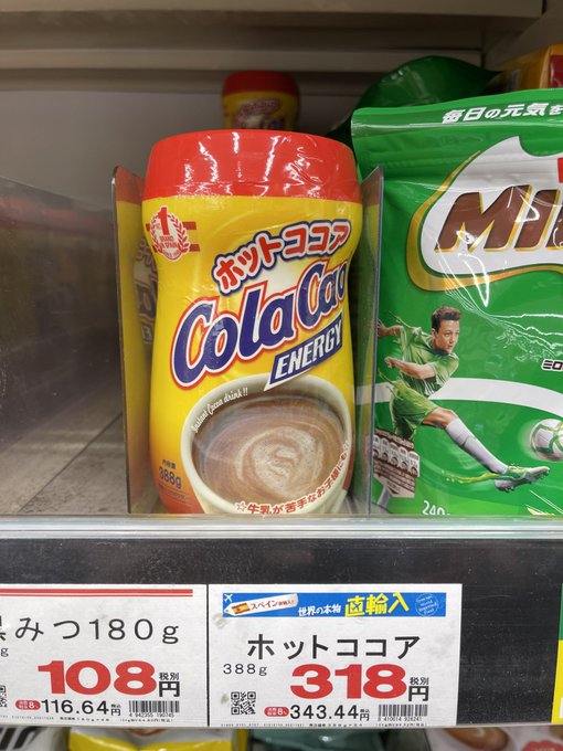 上枝恵美加 Emika Kamieda@Emika_Kamieda -- ColaCao en Japón😳 twitter.com/nekojitablog/s… Japón con jamón 📖 Visto en una tienda de nuestro barrio!!😍 han traído ColaCao (2,70€) y jugo de tomate Juver (1,17€), aunque este no lo vamos a comprar jaja pic.twitter.com/4sqnKaR66n