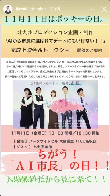 11月11日 北九州でドラマ #AI市長 の完成上映会&トークショーが開催されることになりました。ゲスト出演させて頂きます!