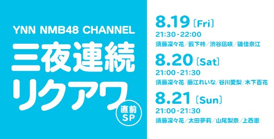 上西恵@jonishi3 -- はじまるよん!!!!!!ショールームも同時配信!!! twitter.com/riichan24h/sta… YNN NMB48 CHANNEL 三夜連続! NMB48リクアワ直前SP! pic.twitter.com/nv2WyxlFzy