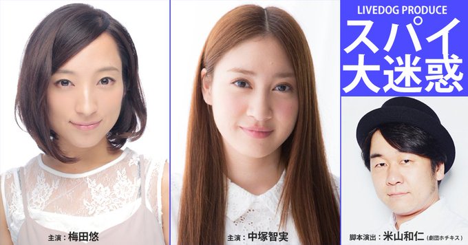 中塚智実@tmm_n0618 -- 7月、こちらの舞台に出演します!ダブルキャストで主演…みんな応援しにきてね!😂 twitter.com/k_pandars/stat… LIVEDOG 【オーディション情報】<5月8日締切>梅田悠&中塚智実出演決定!劇団ホチキス米山和仁脚本・演出7月舞台『スパイ大迷惑』出演者募集中!劇場:新宿村LIVEこりっち:goo.gl/bDSNY0公式:goo.gl/kzBapC pic.twitter.com/s3vz1MKCRL