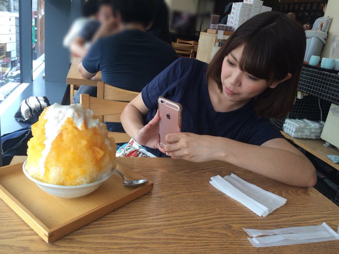 中村麻里子@marikorima1216 -- この間、山崎のあおいたんとお茶会しました(*´˘`*)みよ、このマンゴー氷撮影する彼女の姿勢を…!✨✨そんなあおい今月末誕生日です。 pic.twitter.com/2J9uGxEPf8