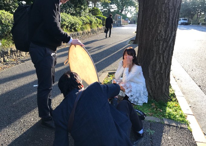 気持ちの良い天気の中、外での撮影。