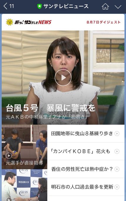 元AKB48中村麻里子がアナウンサーに 台風接近で"嵐のデビュー" - LINE NEWS news.line.me/issue/entertai… #linenews @news_line_meさんから