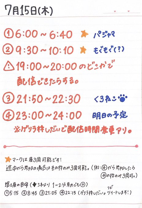 (ゲリラ枠次第で時間変更有)