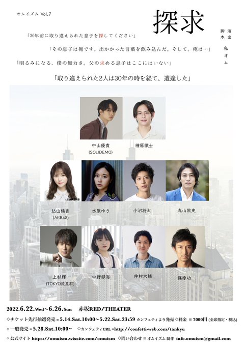 中野郁海-なかのいくみ-@ikumi8_official -- 6月に、こちら出演させていただくことになりました!!少し読んだだけでどんなお話しなんだろうとワクワクします!!自分の役どころも気になるー!皆さん、予定空けててくださいねっ twitter.com/omu_ism/status… オムイズム 情報解禁‼️「探求」脚本・演出 私オム【出演】中山優貴榊原徹士込山榛香水原ゆき小沼将太丸山敦史上杉輝中野郁海仲村大輔篠原功【公演期間】2022年6月22日-6月26日【劇場】赤坂レッドシアター詳しくは下記サイトよりご確認くださいませ。omuism.wixsite.com/omuism pic.twitter.com/MUpPm9kNEU