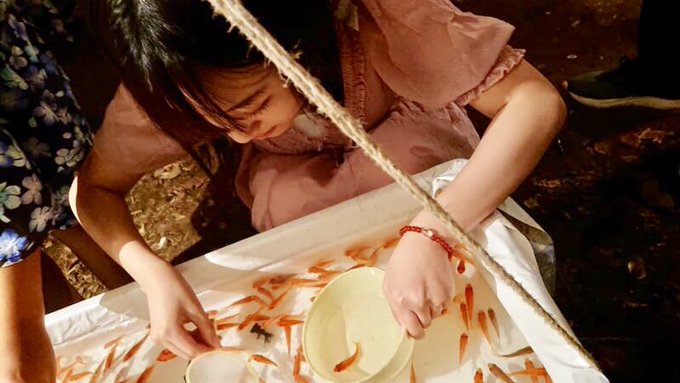 親戚の地元のお祭りに行った時に金魚すくいをしました(^O^)