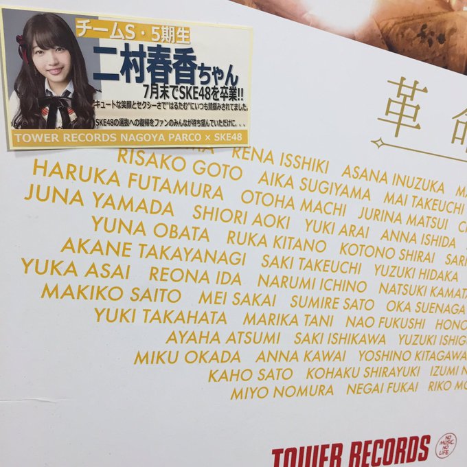 二村春香@harutamchan -- ありがとうございます(;_;) twitter.com/tower_nagoyapr… タワーレコード名古屋パルコ店 【#SKE48】本日のチームS『重ねた足跡』公演にて、5期生 #二村春香 さんの7月末でのSKE48卒業が発表になりました...#はるたむ...総選挙は不出馬でしたが、SKEの選抜に帰ってくる日を楽しみにしてただけにショックです... pic.twitter.com/E5UQO50WNt
