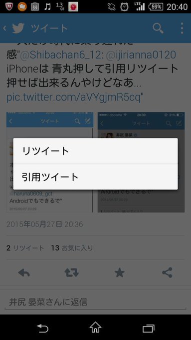 本当ですか?このバージョンじゃないリプの返し方Androidでも出来ますか?教えて欲しいな(´・ω・`)"@IversonTm: @ijirianna0120 @haruna0609_gct