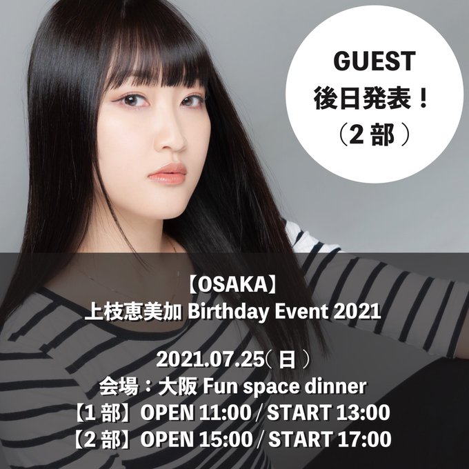 井尻 晏菜@ijirianna0120 -- 明日会えるね🥰 twitter.com/emika_kamieda/… 上枝恵美加 Emika Kamieda お待たせ致しました!生誕イベントの詳細が発表されました😌🎉大阪のプレミアムチケットはファニコンさんにて6/16 12:00〜 抽選販売開始!FC先行販売は6/19 19:00〜、一般販売は6/27 19:00〜 予約開始です!詳しくはHPをご覧下さい!FC: fanicon.net/fancommunities…一般: specialbox.stores.jp pic.twitter.com/7C6iKrm4vl 上枝恵美加 Emika Kamieda@Emika_Kamieda -- @ijirianna0120 明日会えるの??🤔