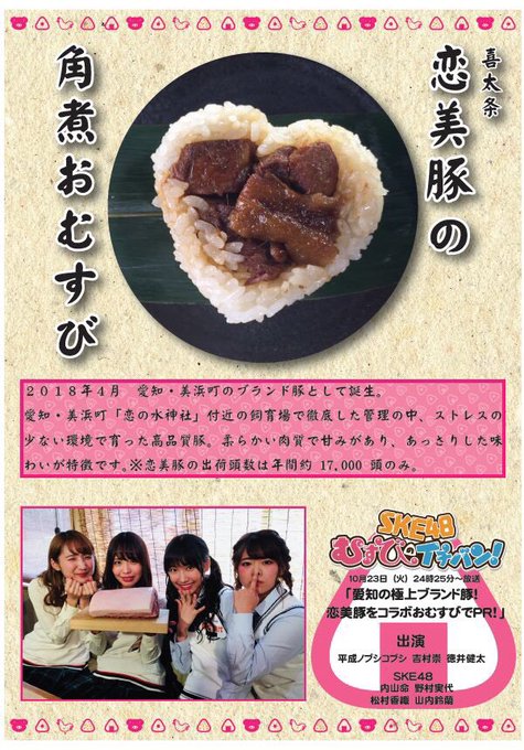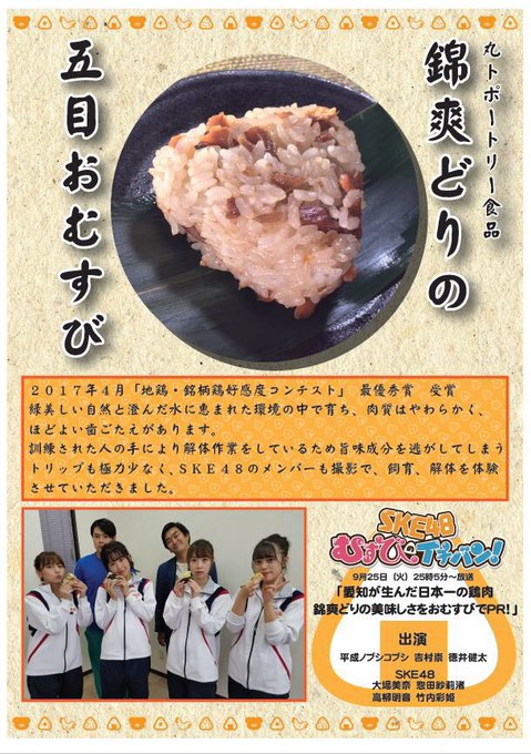 メンバー考案の地元ブランド豚とブランド鶏を使った限定おむすびです🧡