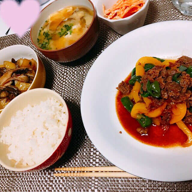 今出舞@m_bigbaby -- 久しぶりにいまでごはん載せときます😋青椒肉絲っぽいやつ舞茸とジャガイモのバター醤油炒めにんじんのゴママヨ和えナスと玉ねぎと卵のお味噌汁最近お外に出ずに毎日ご飯作ってる。笑 pic.twitter.com/q1Kc5Jn6P7