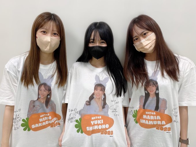 今村麻莉愛@maria_0914_ -- コンサートリハの時にゆきちゃんとりこちゃんとTシャツ交換したよ〜🫶🏻サインも書いてもらったから嬉しくて部屋に飾った✨😂着る時またお揃いにしたいから連絡してください🙆🏻♀️ pic.twitter.com/BNnB88suYb 坂口理子(HKT48)@ricopi_726 -- @maria_0914_ @shimono_0402 了解🫶次はあんまり汗かかない時にしよ....