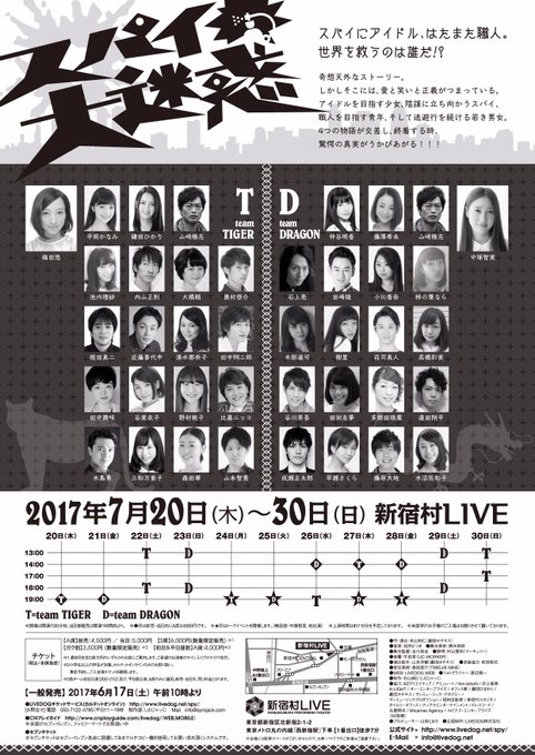【舞台出演情報】LIVEDOGプロデュース『スパイ大迷惑』新宿村LIVE 2017年7月20~30日※ダブルキャスト制(teamD出演)チケット→6月17日(土)午前10時〜 仲谷明香扱い専用ページ quartet-online.net/ticket/spy?m=0…