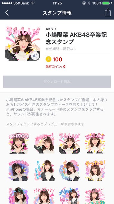 朝起きてLINE開いたら小嶋さんのスタンプが発売されてて買っちゃったー😋 pic.twitter.com/hW0r4BdvaB