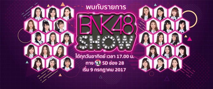 今日の17時から3 SD (28)チャンネルでBNK48SHOWの放送があります♪