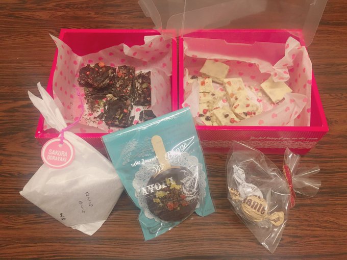 れおな、めい、はたごんからの手作りチョコ。公演を観に来てくださった宇野常寛さんからの差し入れ(宇野さん久々すぎて感動の再会わず) pic.twitter.com/JGX1pj8cuW