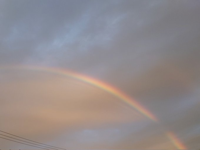 さっき🍙とラインしてて、昨日大きな虹見たから送るねと写真送ってきて、ちょっと待って私も見たんだけど🤣って虹写真送り返したら「同じ空見てる」とか歌詞みたいなこと言い出して朝から二人で爆笑してる。平和🤭