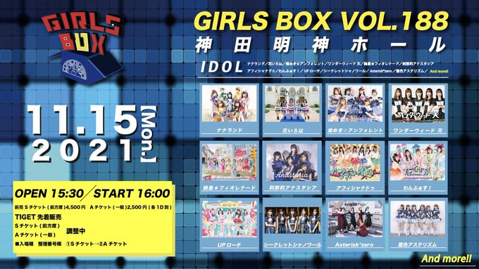 佐藤 栞@B00kmarker_nii3 -- 本日のライブはこれ🎤当日券も若干数あるみたいだから、絶対に刹那的アナスタシアで指名入場してほしい…🥺集合写メも撮れちゃう💪💪5Daysラスト、平日だけど会いたいよ‼️ twitter.com/tsunasta_ofc/s… 刹那的アナスタシア【公式】 🗓 𝙇𝙞𝙫𝙚 𝙄𝙣𝙛𝙤11/15(月) GIRLS BOX VOL.188📍神田明神ホール⏰open 15:30/start 16:00🎫一般 2,500/前方席 4,500(各1D)\🤝指名入場特典:集合写メ/今月数少ない黒衣装着用イベント💫沢山の方に是非お越し頂きたいです‼️#ツナスタ twitter.com/girlsbomb/stat… pic.twitter.com/0eTQ86TcGG