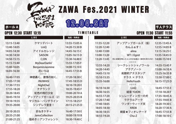 佐藤 栞@B00kmarker_nii3 -- 今日はコレ👉✨所沢です、野外です、全編撮可です、快晴です、来るしか⁉️ twitter.com/tsunasta_ofc/s… 刹那的アナスタシア【公式】 明日12/4(土) は❕『ZAWA Fes. 2021 WINTER』📍所沢ジャパンパビリオン 千人テラス 🎤LIVE:14:45-15:10📸特典会:15:25-16:35 B🤝入場特典:集合写メ+物販購入で2Sチェキ券明日は☀️晴れでの最高の野外LIVEとなりますので是非、観に来て頂きたいです❤️🔥🎟l-tike.com/concert/mevent…#ツナスタ pic.twitter.com/aIxrDSAWFM
