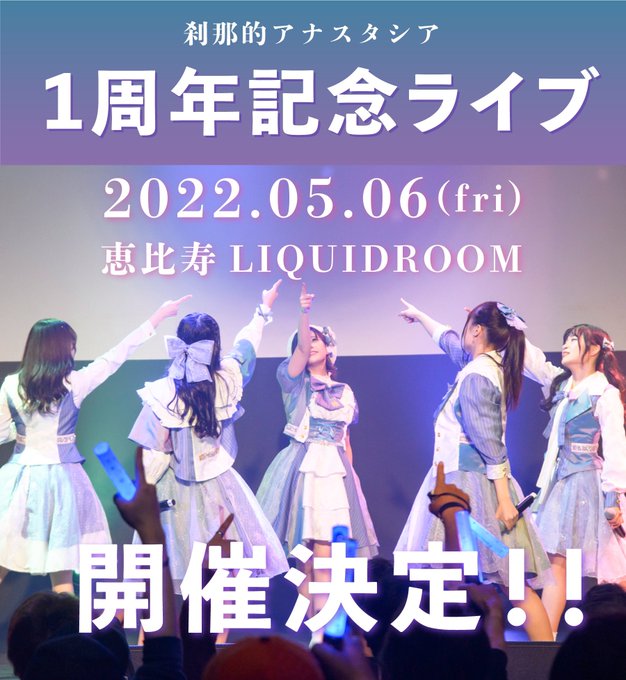 佐藤 栞@B00kmarker_nii3 -- 生誕発表された‼️誕生日当日に開催できるの嬉しすぎ…😭平日だけど予定あけといて!👏✨✨ twitter.com/tsunasta_ofc/s… 刹那的アナスタシア【公式】 🌈開催決定🌈2022年5月6日(金)刹那的アナスタシア1周年記念ライブ恵比寿 LIQUIDROOMにて開催決定‼️最高の1周年ライブ目掛けて、年始から飛ばします🔥🔥(2枚目参照)皆さま、絶対に来てください❣️※詳細は後日発表※5/6目標動員達成で○○○○○○発表#2022年はツナスタの年#拡散希望 pic.twitter.com/RiENZZ7XkY