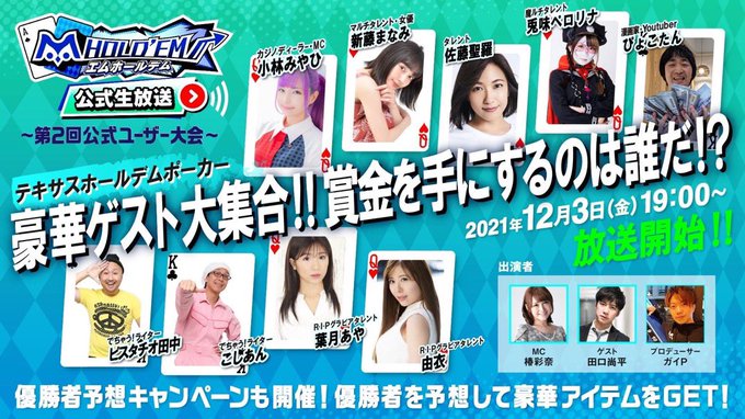 佐藤聖羅@0430seira -- 始まったよー✨はー10でいくぜっっ! twitter.com/ayanatsubaki/s… 椿彩奈@麻雀プロになりました! エムホールデム公式生放送 ~第2回公式ユーザー大会~ youtu.be/c1nReVk5qdc みなさまよろしくお願いします(*☌ᴗ☌)。*゚!賞金を手にするのは誰なのか!優勝予想キャンペーンダイヤ1000個は激アツよ!!19:00〜生放送見るのだ!!!#エムホールデム pic.twitter.com/B20MnJBPkw
