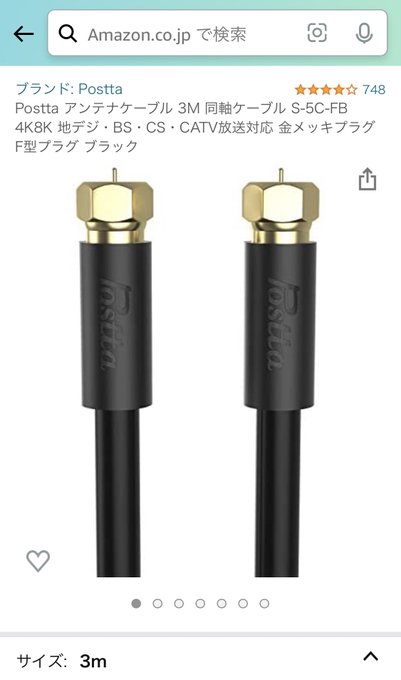 同軸ケーブルを買って繋げる。普通に真っ直ぐのケーブルでいいのかな?