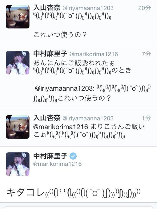 中村麻里子@marikorima1216 あんにんにご飯誘われたぁ⁽⁽(ી₍₍⁽⁽(ી⁽⁽(ી₍₍⁽⁽(ી( ˆoˆ )ʃ)₎₎⁾⁾ʃ)₎₎ʃ)₎₎⁾⁾ʃ)₎₎のとき