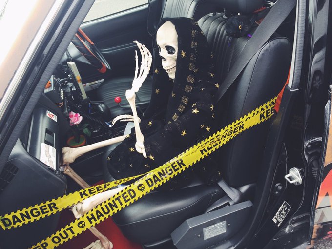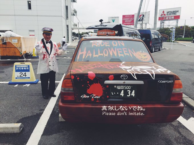 入山杏奈@iriyamaanna1203 -- 福岡空港ついたらハロウィン仕様のタクシーがお出迎えしてくれました😳外から通り過ぎる人にジロジロ見られるタクシー初めて。笑 pic.twitter.com/BLuZ2f7FBL