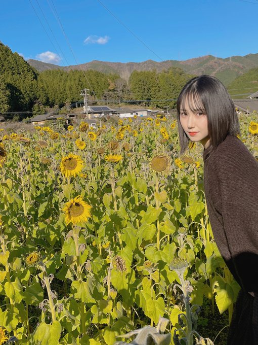 兵頭 葵@blue_Aoi118 -- 愛媛新聞に掲載されていた向日葵畑に行ってきました🚗💭成穂地区高齢者グループの角藤さんと!許可いただきました👌🏻霜の影響で少し向日葵の元気がなかったです🥲#向日葵畑 #愛媛 pic.twitter.com/2BFTAbgUOT