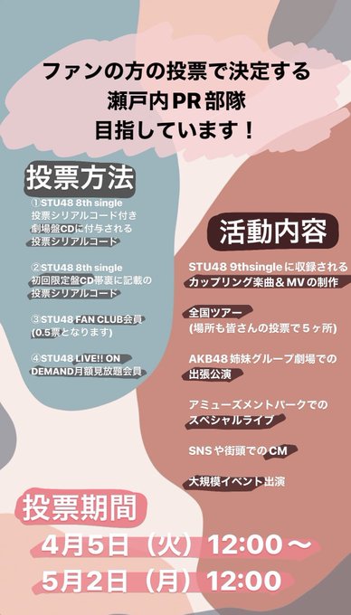 兵頭 葵@blue_Aoi118 -- 「誰に投票しよう...」って方私にまかせてほしいです!!!そのくらい本気です 。#瀬戸内PR部隊 #STU48 twitter.com/blue_aoi118/st… 兵頭 葵 CD申し込み📀stu48.chara-ani.comSTU48 FAN CLUB🌷sp.stu48.comLIVE!!ONDEMAND🌼dmm.com/lod/stu48/#STU48 pic.twitter.com/tmQsOFICw7
