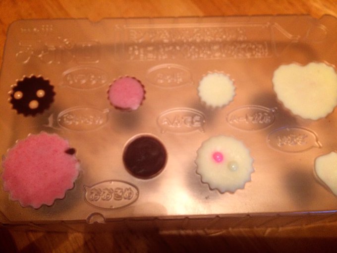 ハートの型でケーキ焼いて、生クリームに溶かしたチョコレートを混ぜて生チョコケーキ作ったよ💚🎂