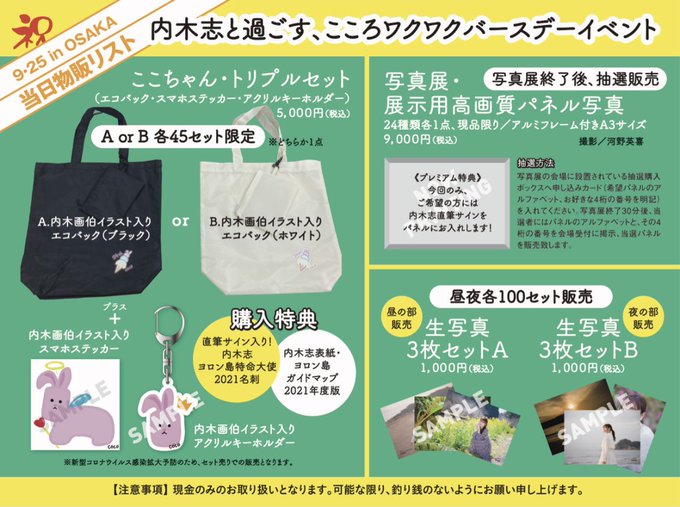 内木志@naiki_cocoro -- 25日のイベント、当日券一般販売少しだけあるみたいです!物販販売リストも出ました✨久しぶりの生誕グッズ嬉しい☺️ゲットしてね💓 pic.twitter.com/j2lVvu0gZK