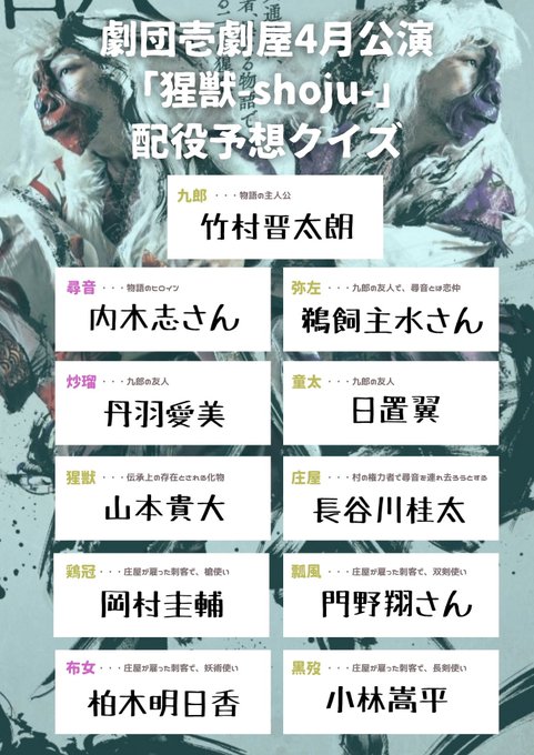 壱劇屋さんの舞台は先輩方が出演されてるの何回も観てきたけど、圧倒的な殺陣を今回近くで観れるのが凄く嬉しいです⚔
