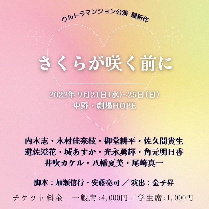 9月もうひとつ舞台に出演致します💓