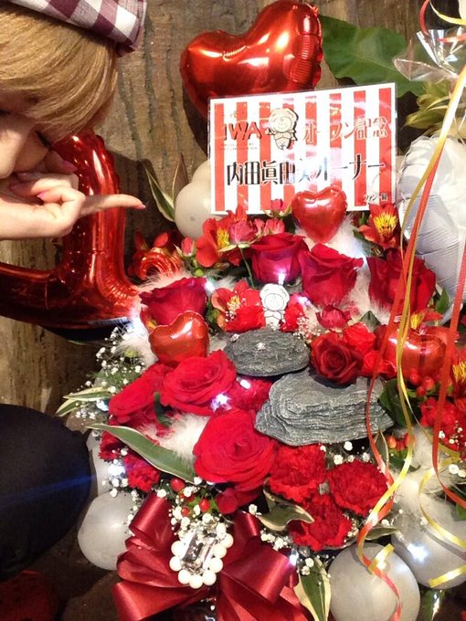 内田眞由美@Mayumi_mmm -- この間、千明(@setochiaki)がお花を届けにきてくれたよ💕岩ぼうやを手作りで縫ってくれた😭感動レジ前に置いてあるのでぜひ見てみてくださいね😌✨ pic.twitter.com/FGxXBtzuBN