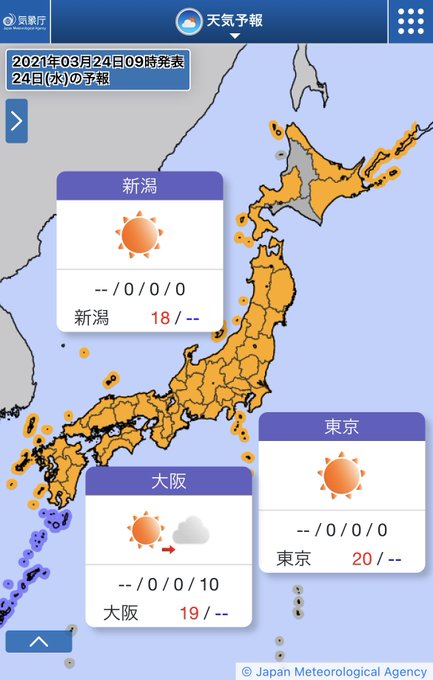 気温は昨日より高く、九州から東北では20℃近くまで上がる予想です🌸