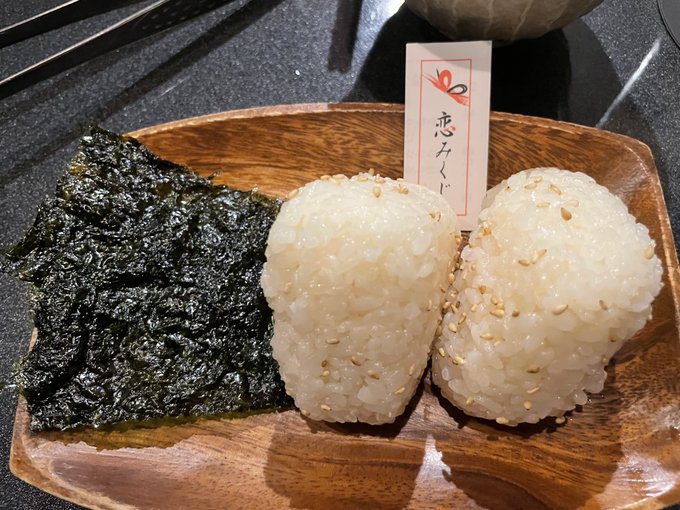 内田眞由美@Mayumi_mmm -- うわーい!ありがとうございます😘❤️🔥 twitter.com/kryujiro/statu… 小松隆次郎 #焼肉IWA のフォーチュンおにぎり。肉をお腹いっぱい食べた後でも美味しかった〜☺️ pic.twitter.com/4Gks83xO5M
