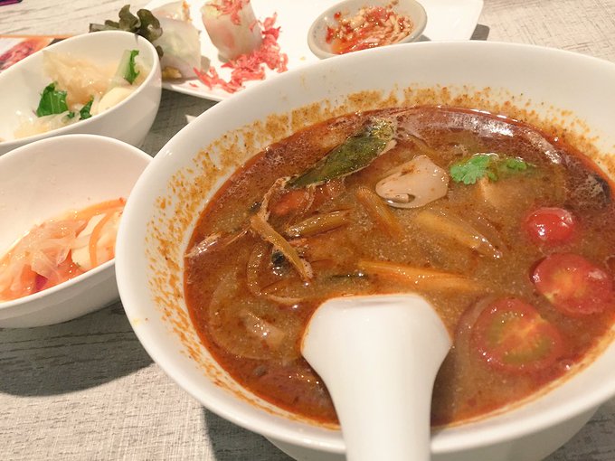 出口陽(デグチアキ)@akisun314 -- 今日みぃと久しぶりのタイ料理食べたー今までマイサイパクチーやったけどパクチーが食べれるようになったよ(*^-^)トムヤムクンのスープ永遠と飲み続けたい... pic.twitter.com/2TKqClnxwB