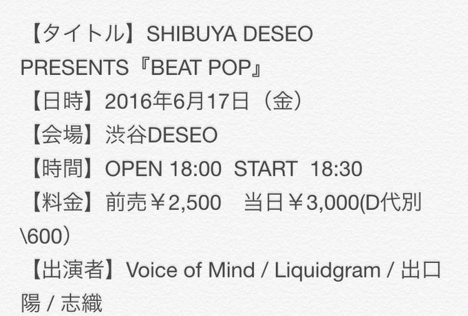 6月17日(金)にSHIBUYA DESEO PRESENTS『BEAT POP』に出演します!