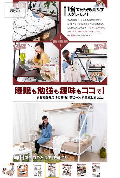 ベッドの上で1日が完結できたらいいなと思いながらずっと生きてきたんやけど、、、そんな私の為に開発されたんじゃないかなと思うベッドを遂にみつけてしまった !!! pic.twitter.com/clRPgCFU6T