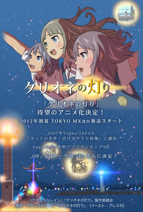 ナチュラルレイン原作『クリオネの灯り』が2017年夏にTVアニメ化。主題歌はakiが担当!それに伴い新しいアー写も公開。
