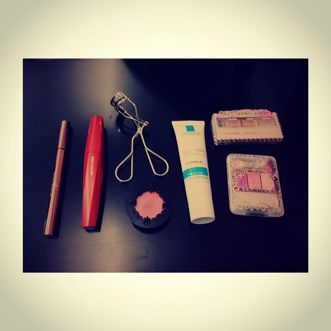朝から撮影してきました😊今日のメイク紹介💜基本薄め。今日はピンクっぽく♡日焼け止め下地にコンシーラーと練りチーク&リップと薄めにカールマスカラ。アイシャドウは目尻と下まつ毛のところに少しピンク💕アイラインは目尻だけ今日はブラウン。 pic.twitter.com/EVdqb67Ezq