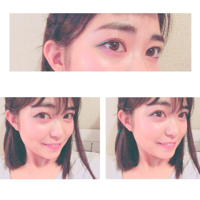 今日のメイクは水色のラメアイライナーがメイン♡♡目の下は…アイシャドウを目頭から順に…ピンク、紫、塗って目尻に水色を薄く塗ってます💙💜💕グラデーションみたいにするイメージ(人´v`)♡ pic.twitter.com/Npr5vZOh01