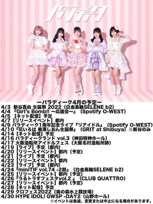 前田彩佳【パラディーク】@ayaka_pdq -- 明日ですよ!ピンクのサイリウム準備できてますか?💓一緒に盛り上げましょうね-`📢⋆ twitter.com/para_deeq/stat… パラディーク 🎪🎪明日の #パラディーク🎪🎪4/3(日)🐰新谷真由 生誕祭2022🐰@ 白金高輪SELENE b2OPEN 18:00 / START 18:30事前特典会📸15:30 -16:30(新谷のみ)🎫ticketvillage.jp/events/11523本日23:59まで購入可❣️🐰前方 ¥6,000(限定Tシャツ付)🐰一般 ¥2,000(チェキ券付)詳細⬇️paradeeq.com/news/450/ pic.twitter.com/TlFFR0kPkd 前田彩佳【パラディーク】@ayaka_pdq -- チケットあと3分!!